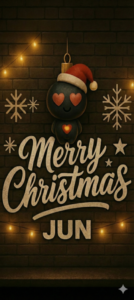 街灯の光がにじむ夜に、**“MERRY XMAS JUN”**のグラフィティが映えるストリートな1枚(A)。