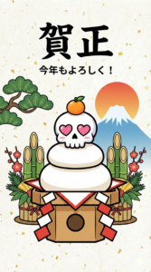 鏡餅になったハートスカルが主役の、ほっこり可愛いデザイン。