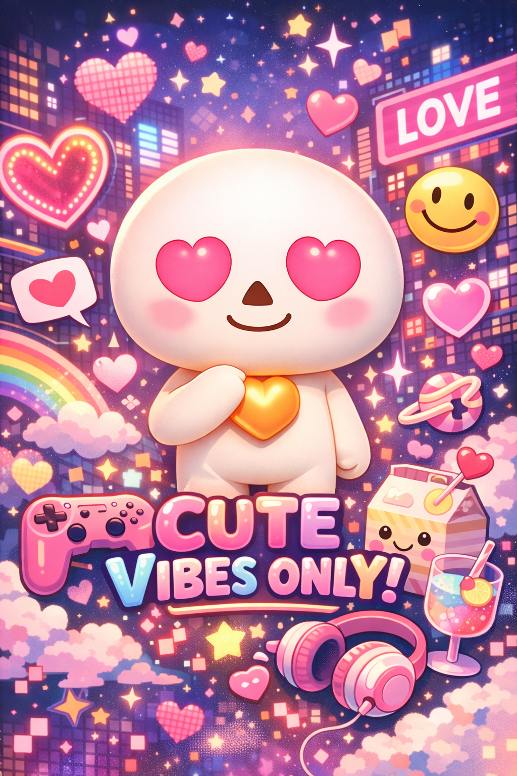 パステルの空に、ピクセルハートや星、蝶がふわっと舞う“夢かわ”デザイン。
