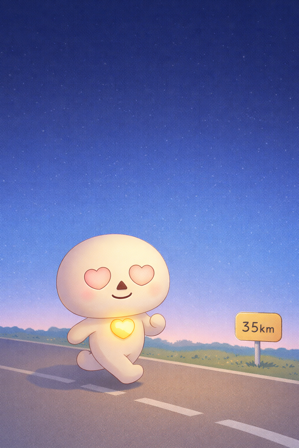 『三十五キロで、笑う』に合わせて、35km地点を走っている“ラストスパート”の壁紙に仕上げました。